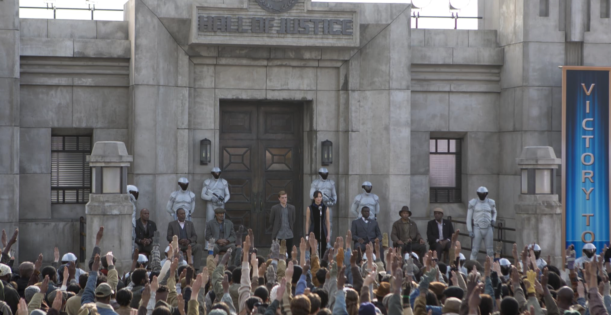 The Hunger Games shows what happens when these principles are abandoned. The Capitol writes the laws to suit itself, and breaks them whenever it wants. There is no empathy to those they deem ‘other’. To those they see as criminals. To those who are pitiful, but also animalistic. The annual Hunger Games serves as an effective marketing tool for the Capitol’s propaganda, allowing them to spin a single narrative of exacting justice to the twelve Districts. By decrying the districts as public enemies of the state, brutal ‘punishment’ is not only legal, but justified against their own citizens. Their violence becomes legitimate and normalised.